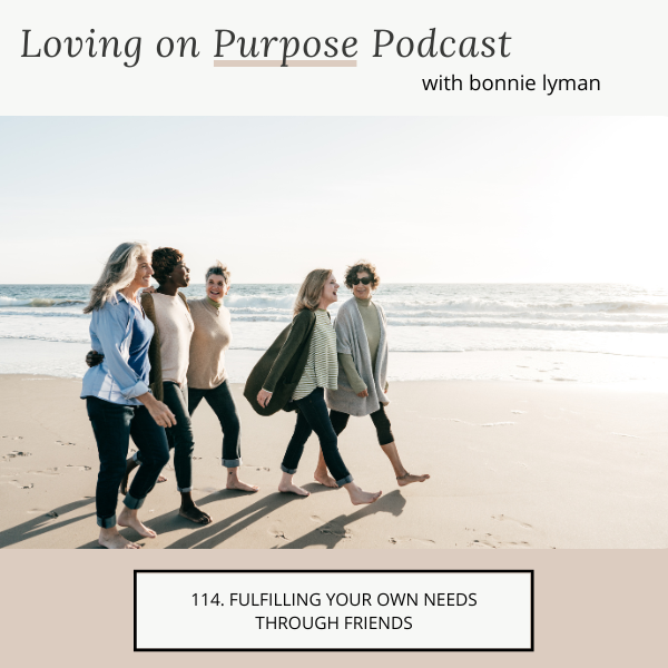 Episode 114: Fulfilling Your Own Needs Through Friends This is Bonnie Lyman, and you're listening to the podcast, Loving on Purpose, episode 114, Fulfilling Your Own Needs Through Friends. Welcome to the podcast, Loving on Purpose. I'm your host, Bonnie Lyman. If you're having trouble navigating through your relationships with your adult children, If you are struggling to connect with them or having specific challenges, you're in the right place. Hey, my friends, it's good to be back with you. Whew! Those weeks go by fast. I can remember when I was a kid and summers would last forever. Now they tend to go by so fast. But it also meant the winter went by fairly quickly, and I'm enjoying a very sunny day. I hope there is something about your day that you're enjoying. I want to welcome any new listeners to my podcast, and I I suggest you go back and scroll through my previous podcast to see if there's anything on there that sparks your interest, that specifically relates to the problem that you have. And I also want to encourage you. If you are not on my email list there's two ways to go about doing that. First of all, though, you have to get on my website, BonnieLyman. com, and there's a place where you can sign up for a free resource called Being Yourself Around Your Adult Children in order for me to send that to you, you have to give me your email list, and so that automatically puts you on it, or there's a place where you can just sign up for my emails. I think they're pretty fun. I get a lot of positive feedback of how it has helped them, inspired them to keep moving forward in their struggles, especially with their adult children. But the things I talk about really apply to to any relationship. It's, it's using all the same tools. The other thing I haven't mentioned in a while, I think I'm getting a little better at talking faster, but I personally, listen to all of my podcasts at a faster speed and you can do that usually in however you listen to my podcasts. Most people have a favorite podcasting program app they use, and that's Usually, always an option. So today we're going to talk about fulfilling your own needs through friends. Now I am going to talk a little bit about why. It is our responsibility and no one else's to fulfill our own needs. And I'm also going to then talk about ways and benefits of fulfilling needs that aren't being met at this time in our life that we thought would be met by our children, Whatever. So, it's very normal to be disappointed in the relationships we're having with our adult children because this disappointment comes about because life is not going how we pictured it would. Our expectations of how our life would be, especially with family. our children, our expectations are not being met. We might have all different expectations, so we might be disappointed for different reasons. But we are all in the same boat, and most of the time we thought life with our children would be a major portion of how we spent our time. I don't like the word empty nesters, but that's kind of what we are. We're, our children are no longer living at home, are no longer needing to be watched over and advised as they were when they were kids. Still in high school, we'll say. So some of the obstacles parents often face as their children become adults and move out of the home is they aren't included in their children's lives. They don't get together as often as they thought they would. They don't take trips together as often as they thought they would. And another one is. Their adult children, their married adult children, maybe are spending more time with their spouse's parents than they are with you. I another unmet expectation is, I always think of the cover on Norman Rockwell's magazines during the holidays when these families, perfectly dressed, perfectly set. table perfectly. Turkey are sitting around this table. So I say our holidays didn't turn out to be Norman Rockwell holidays. Another obstacle that parents face is they thought their children would be sharing more with them of just what's going on. They're not confiding in you. They're not telling you when they got a new job or when they bought a new car. My husband, this was years ago, it must have been one of our other kids, told him that one of our daughters had bought a piano. And he said, why didn't someone tell me that she bought a piano? I mean, this was exciting, that she had the money to do that, that she had the interest to take piano lessons or whatever she was going to do with it. And they said, well, dad, if you were on Facebook, so that is what caused him to join Facebook. Because he figured out if he wanted to know what his kids were doing a great way to follow them would be on Facebook, because they weren't going to necessarily call. And A lot of us thought we would be spending more time babysitting our grandkids if needed. And again, maybe it's the spouse's parents that get asked all the time, especially if it's your son and your daughter in law. Daughters sometimes feel more comfortable asking. There, mom and respectfully to their mother in law in that they, they don't want to, to burden them or perhaps the only time that you get called upon to be included or invited to do anything is to babysit. They're kids, and so we can have some disappointment and resentment and, you know, we're more than than glad to babysit their kids, but that just not be the only connection that we have with our adult kids. Some of us have kids. that are still living at home. And we didn't anticipate this happening. Maybe if they were going to school, or they had lost a job, or in between jobs, and didn't have the money to pay rent, or perhaps they were married or not, and, and And for a certain time period, they were asking if they could live at home so that they could save money to buy a house. But we didn't expect that they would just be staying at home, just lying around watching TV. Netflix or not doing anything const