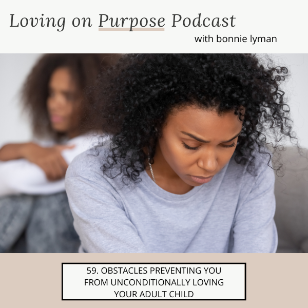 Episode 59 Obstacles Preventing You From Unconditionally Loving Your Adult Child Welcome to the podcast, loving On Purpose. I'm your host, Bonnie Lyman. If you're having trouble navigating through your relationships with your adult children, if you are struggling to connect with them or having specific challenges, you're in the right place. This is Bonnie Lyman. You are listening to episode 59 Obstacles That Prevent Parents From Unconditionally Loving Their Children. Hello everyone. I'm so excited to be talking to today. I've just had a fabulous week. I'm in Hawaii, right? and I talked to my daughter two days ago and she said it was snowing. So I go, yes, February in Spokane gets pretty old. It's gloomy. It actually starts warming up a little bit, but it's. Dreary. It's gloomy. We get, it's not like fog, but these low clouds, and I really don't like to whine about anything, especially the weather. It happens every year, but this year we decided to do something about it. But I think, why am I whining about the weather when, what? , was it 49,000 people died in that, um, earthquake in Turkey and that war, that little country of Ukraine is just fighting with all their mite to maintain their sovereignty from Russia. And here we're complaining about the weather. We have warm cars. We have warm houses, we can go skiing. But anyway, we decided this year that we were gonna come to Hawaii for two weeks. So this week was very heavenly for me. This week I worked, I did my coaching. I had several consults and I just can't tell you how much I love this work that I do. I love the women that I talk to every day. even if they don't sign up to work with me, that's okay. I hope when we have these, I call 'em now a relationship. Fixed strategy call that I'm gonna give you one little tip one help. That hopefully is going to uplift you. And I've gotten such good response on those of you that listen to my podcast that it has really helped you and perhaps some of my Instagram post and some of the newsletters that I send out. But you are all interest A. A fabulous, interesting. Yes. Fabulous, humble women. So sometimes it's our struggles that turns us in to the person that we really wanna be. I wanna be known that I was humble and I wanna be known that I'm mourned with those that mourned. I don't wanna be. Known for being prideful and then just the industry. I work in this coaching industry. I have never worked with a group of people that we're so willing to help each other, to grow their business, to refer clients to them, to boil them up. They are the most wonderful, loving, kind people I have ever met. So I, I, I almost feel like I'm in the prime of my life. Until I try to climb up five flights of stairs or talk about the latest TV series or the latest, uh, recording artists with my kids. I know what songs I like. I know which actors I like. I know which movies I like, but I can't remember the name of anything anymore, but I don't care. I've just come to a very comfortable place in my life. I want to welcome anyone who's listening for the first time to my podcast, and if you really wanna help other people and you don't know how, just share my podcast with them. There's always somebody that can glean from it, but I appreciate all you return listeners if you wanna subscribe to it. I know you just go in Apple in iTunes, you go to the upper, um, right hand part of the. Screen if you're on your phone and you just click the little check mark and then I think they notify you. When I publish my podcast, um, I try to get it, or I do, I get it published every Wednesday, but right now it's about eight o'clock. Hawaii time, so I know that's 10 o'clock Pacific time. And so for those of you in central time in the East coast, it's probably Thursday, but I do the best I can and I try to be. As consistent as I can, and I have to admit, I'm quite proud of myself for doing this. I'm not arrogant about it, but it just fuels me when I hear somebody say, It, it really helped them. And that's all I wanna do. So today we're gonna talk about five obstacles that keep us from loving our adult children. Now, first of all, I guess you have to decide if you really wanna do that. I'm just assuming you do because love feels so amazing and all you have to do is remember when you held that baby in your arms for the first time. you, you just loved. You love that little human. You couldn't believe that God could help you create such a thing. So wonderful. And it's, to me, love is feeling whole and complete and warm and just content. And I really believe, and that's why I say love always wins when, uh, love trumps every emotion out there. And when we choose for whatever reason not to love our kids. Even when they're doing things that are very upsetting, even when they say things to us that hurt, then. We're, we're the ones losing out. And so if you can't, if you don't know what I'm talking about, you may be thinking, how is it possible to love somebody? That is always, I call it shooting arrows at me. And yes, I always feel the sting. When one of my kids is Kurt with me or says something critical of me, but I've learned that it's my thoughts about what they did. That's making me feel hurt. So most of the time I can pretty well manage my thoughts unless I'm really tired or really hungry and maybe I just want to feel hurt for a while or feel angry and I know how to do that and I teach people how to do that. So it lessens it. So that we're not resisting feeling those feelings when we resist them. They just become more intense. But it allows me to love them, and most of my clients will say, yes, I love my children. Of course, I'm always gonna love my children. and I don't like what they're doing. You don't have to like what they're doing, but sometimes I feel like my client, they only love their children because they're theirs, because they aren't feeling those good feelings. That when we love another report, another person, we actually reward ours