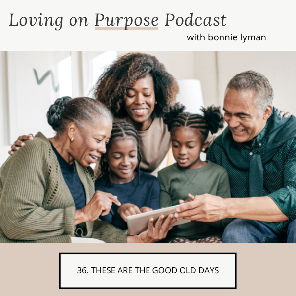 Why do we long for the good old days? Life was simpler? We knew what our kids were up to? What if we had the thought "these are the good old days"? I had some big disappointments and heartaches with my children when they became adults. Was it a difficult time? You bet. But I am so glad that I was able to have children; I am so glad for the the challenges they brought that allowed me to grow into a person I respect. These are the good old days. I can't wait to see how everything turns out; I can't wait to see where I'll grow next; I love watching them figure out their lives. I love watching them recover from a fail. I love that I am their mom. I love choosing to love my kids. Love always feels best